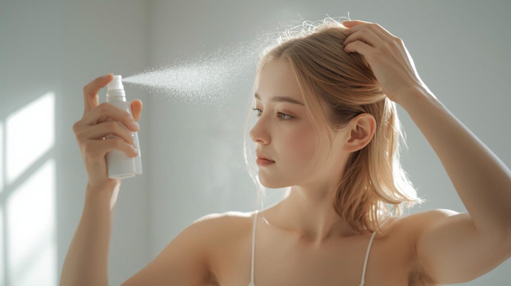 朝の寝癖直しには、髪を守りつつツヤを出せるミストが便利です。