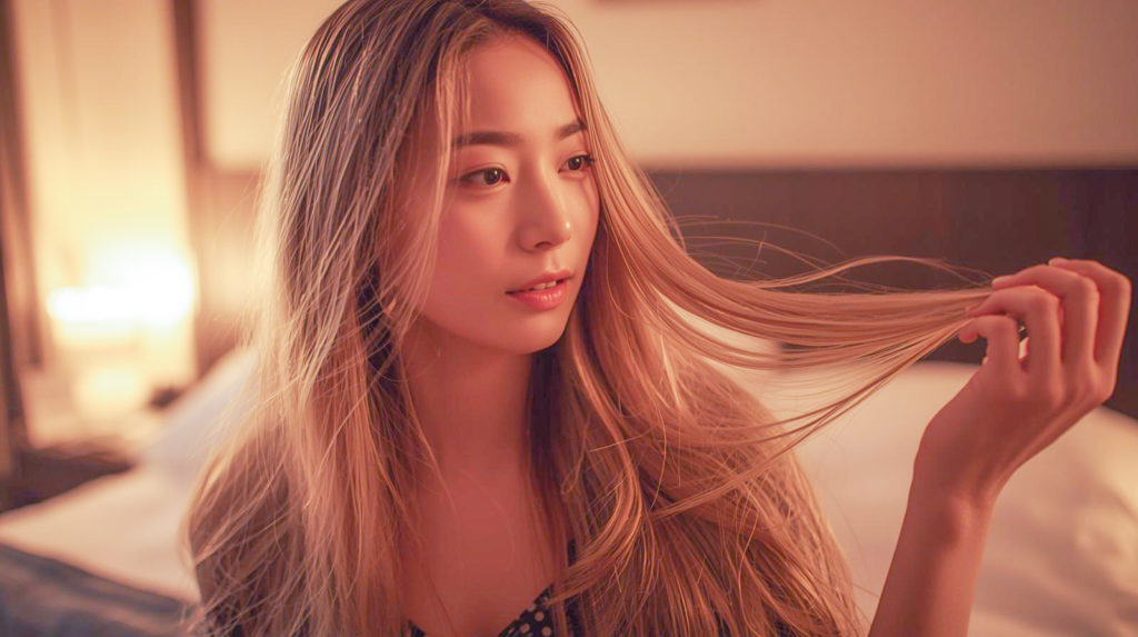 ハイトーンやブリーチカラーの髪は、髪内部の水分保持力が低く、乾燥しやすいのが特徴です。